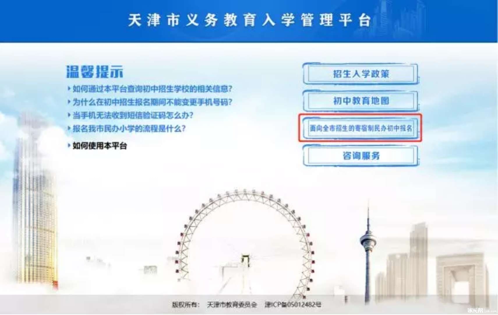 1)信息填写:证件号码、学生姓名、手机号码、均需填写《天津市初中入学信息登记表》中所留的信息。