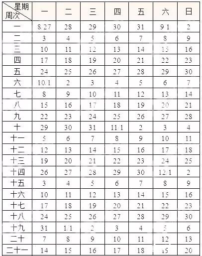 教学周21周,工作日105天(含节日5天),公休日42天