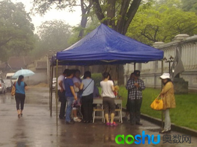 天下起了雨,学校在操场外搭起了棚子,供大家报名