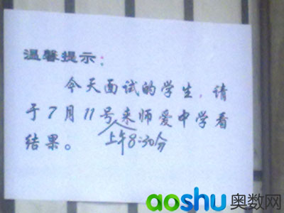 太原师爱中学小升初选拔现场(2) 太原奥数网整理 2012-12-06 14:31:44 7月11日公布结果 选拔考即将结束 推荐阅读: 2012年师爱中学小升初招生通知 太原市师爱中学学籍问题 太原师爱中学分班考试时间 十二中分校——师爱中学介绍 首页 上一页 下一页 尾页