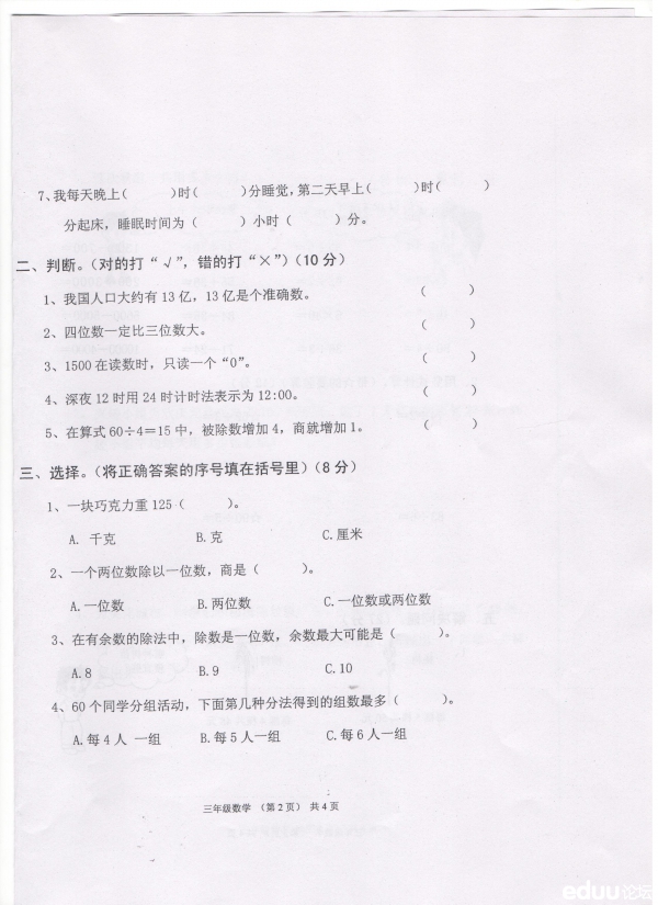 万柏林区2011-2012学年第一学期期中三年级数学质量调研卷(2)