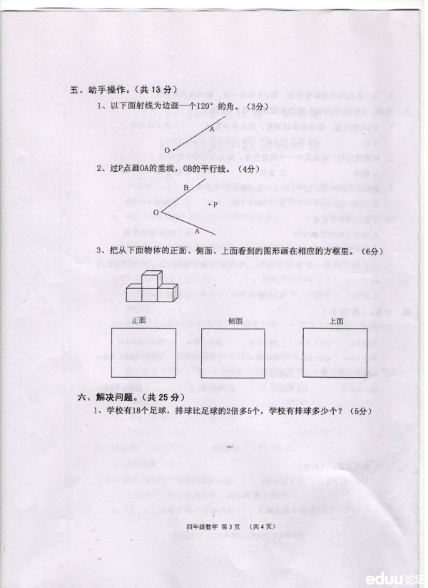 2011-2012学年第一学期其中四年级数学质量调研卷(3)