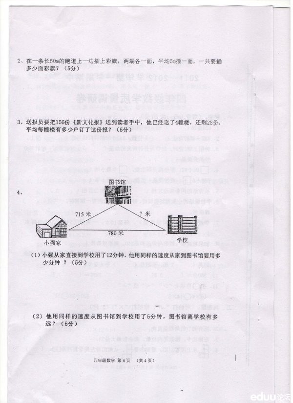 2011-2012学年第一学期其中四年级数学质量调研卷(4)