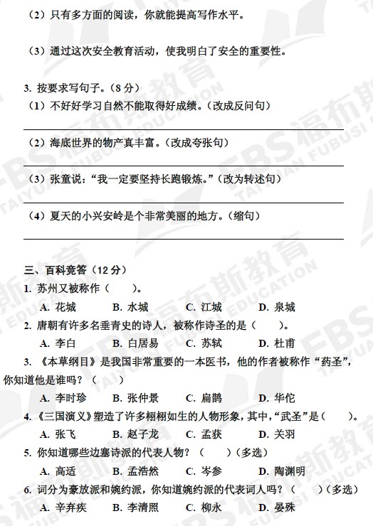 2012年福布斯第一阶段四年级语文真题(2) 太原奥数网整理 2013-02-05 14:36:17 更多信息: 2012年福布斯第一阶段四年级语文答案 2012年福布斯杯第一阶段四年级数学答案 2011年度福布斯杯各年级真题及答案汇总 首页 上一页 下一页 尾页