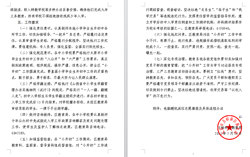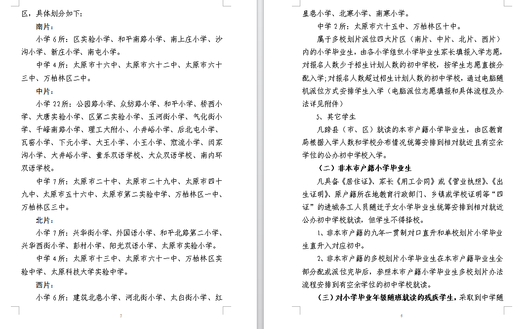 2015年太原万柏林区公办初中小升初入学政策(2)