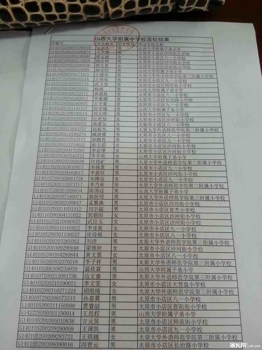 2015年太原小店区小升初摇号出来了,下面的摇号名单包括以下学校:山大附中、38中、第三实验、27中、21中、47中、48中、外语科技等。