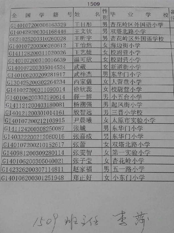 2015年太原南海中学铜锣湾校区分班名单(4)