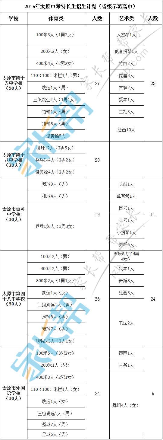 2016太原中考特长生招生计划参考2015(4) 太原奥数网 2015-09-11 17:26:30 相关链接: 2015年山西顶尖中学排行榜名单出炉 2016年高考自主招生需要提前准备这些! 2015中国百强高中排行榜出炉山西三所上榜 首页 上一页 下一页 尾页