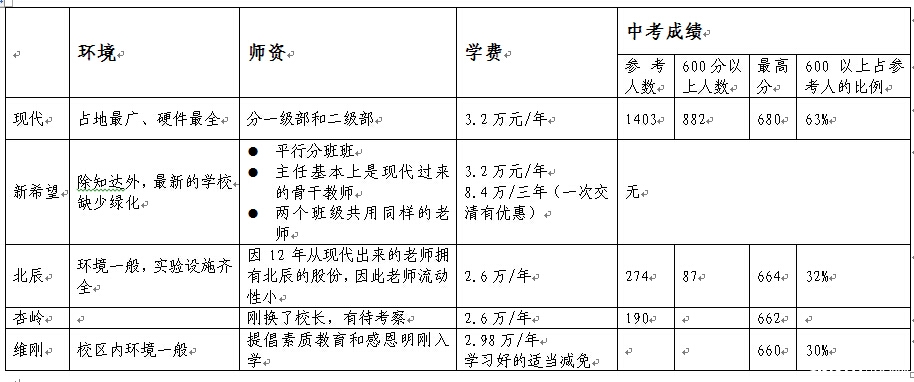 昨天晚上在学而思五一路校区参加了愣愣的小升初讲座,这一次讲座主要介绍了几所私立学校的对比,工作习惯我整理成了表格,供大家参考。