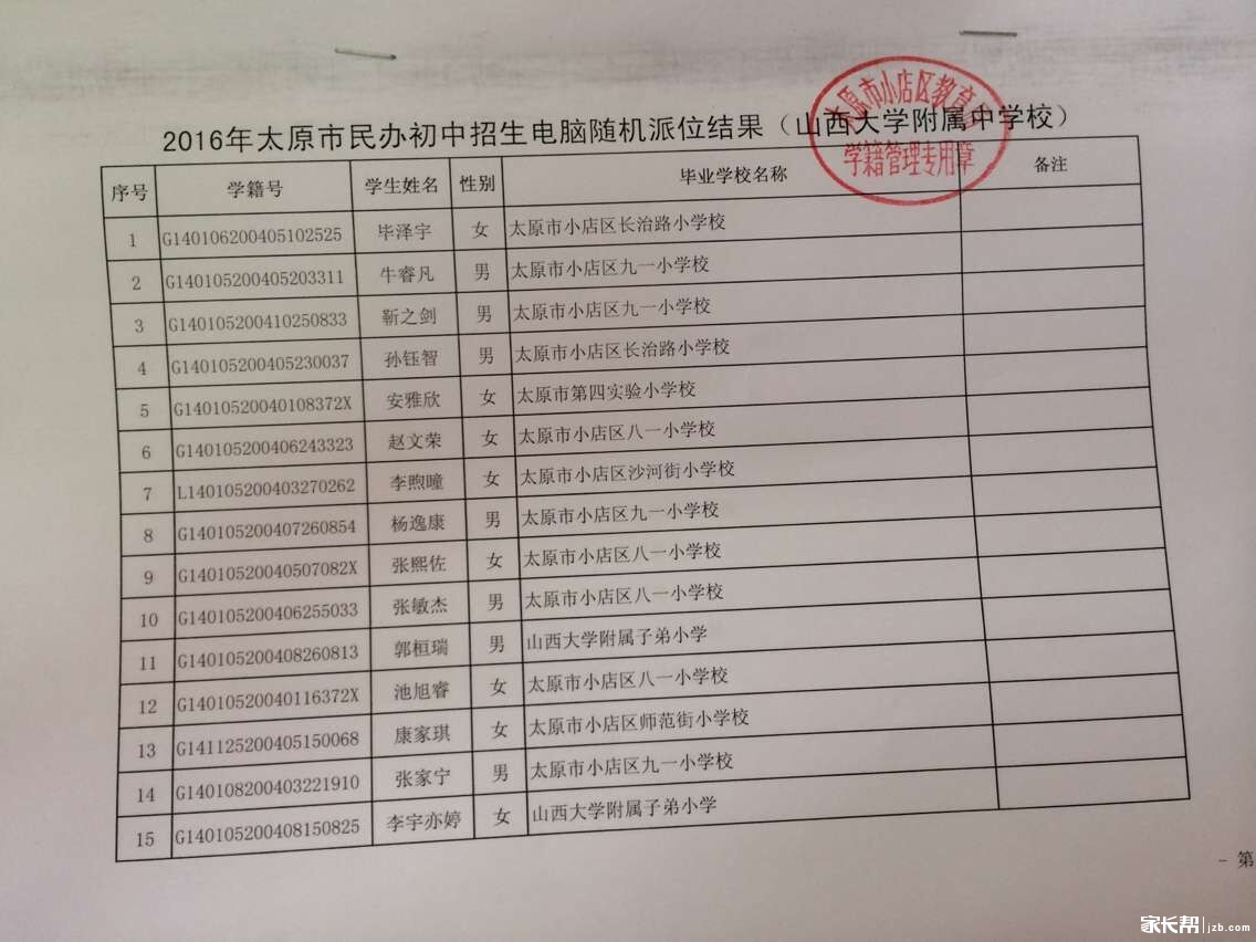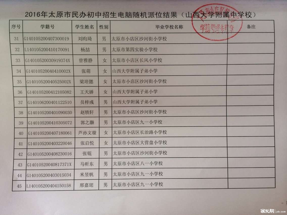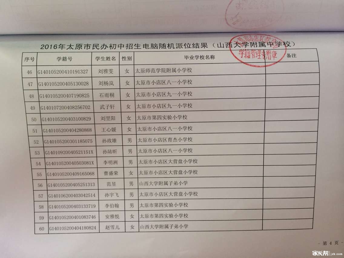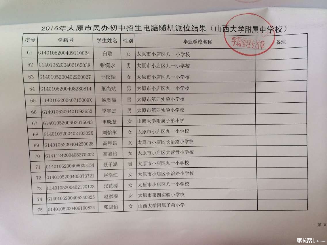 2016太原山大附中小升初摇号名单公示 太原家长帮论坛 2016-08-02 16:12:17 山大附中摇号结果公示,摇了76个人呢 小编咨询了家长了,说是山大附中招200,直升124人,摇76、网报1485人