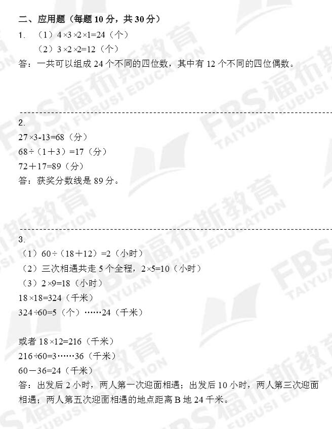 2015太原福布斯二阶段五年级数学测试题答案(2)