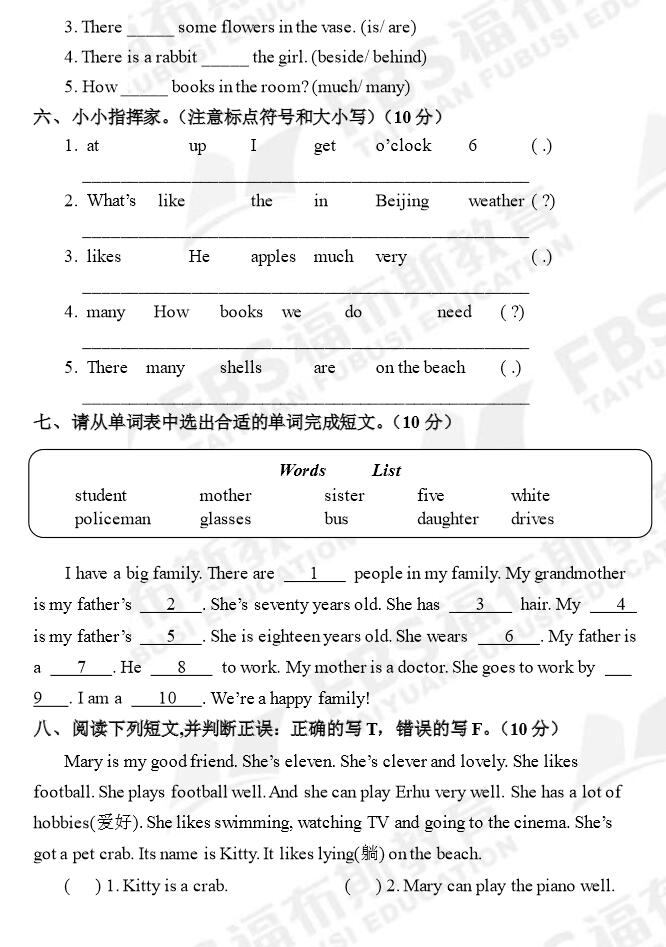 2015太原福布斯一阶段四年级英语测试题(3)