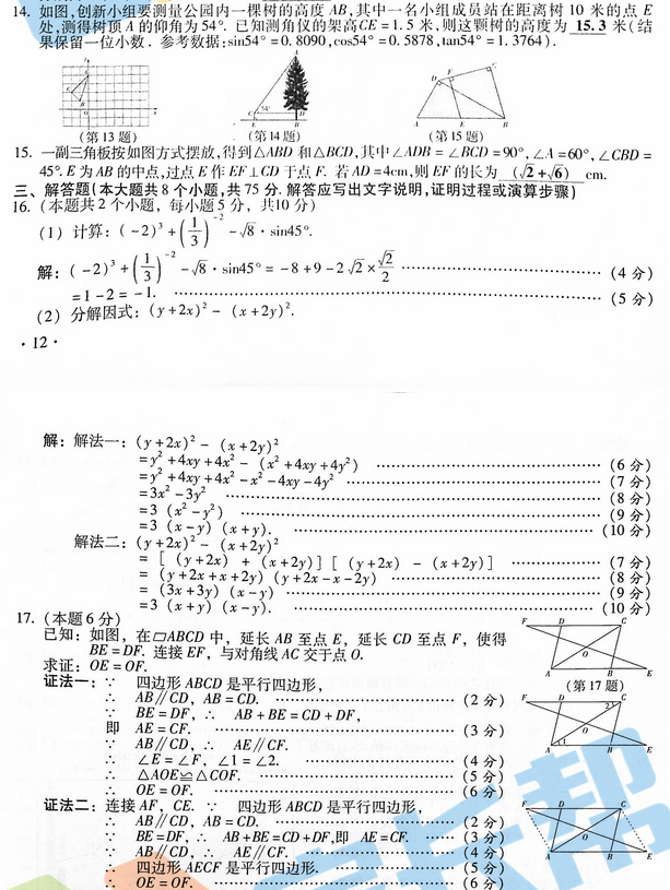 2017年山西中考数学真题答案详解(2)