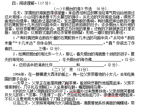 2018太原苏教版六年级语文下册期中试卷2(4)