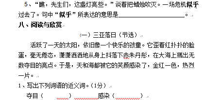 2018太原苏教版六年级语文下册期中试卷5(3)