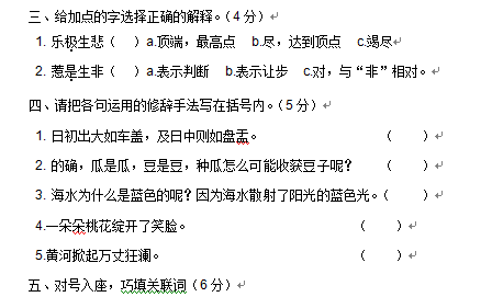 2018太原苏教版六年级语文下册期中试卷6(2)