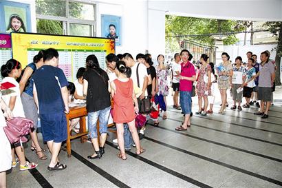 图为:“小升初”择校报名现场排长龙