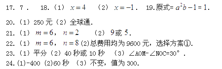 武汉二中广雅08-09七年级数学期末考试试卷参考答案