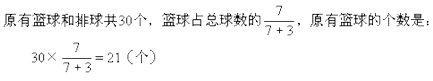 买进几个排球后,排球的个数占总球数的40%,篮球应占总球数的1-40%=60%,这时可求出现有两种球的总数为: