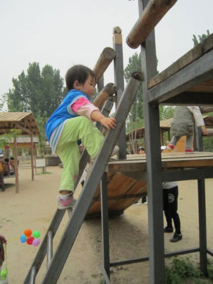 在儿童乐园里看到这样一件事情:一个父亲带着儿子到这里来玩,这时几个儿童在一种大型攀爬器械上爬得正高兴,儿子看到别人玩得开心,自己也要上去,可是上去以后又害怕了,不敢往前爬,说:“爸爸,快抱我下去。”爸爸却回答:“下来干什么?没事儿,往前爬!”妈妈在场会心疼地马上把孩子抱下来的。父亲和孩子在一起的时候有自己独特的交往方式和活动内容,他们有时把自己变成“大男孩”、“大朋友”,和孩子一起跑跑跳跳,做各种游戏,有时和孩子一起修理各种玩坏的玩具,有时他们会极有耐心地回答孩子们提出的各种“为什么”。正是在这些活动中,培养了孩子们活泼、勇敢、自信、智慧等多种心理品质。