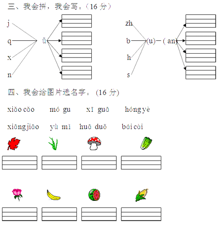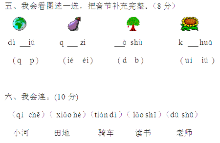 小学一年级上册语文期中试卷1(2)