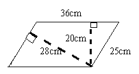 5、下图中,平行四边形的高是28cm,它的底是( )。
