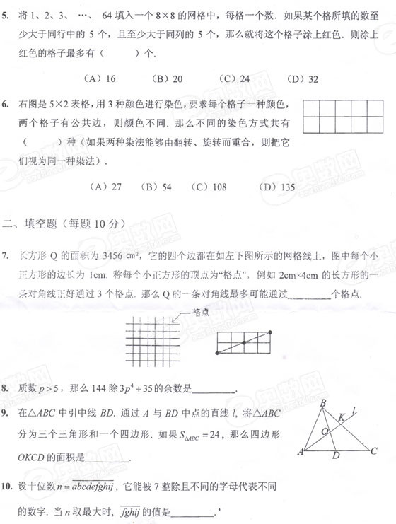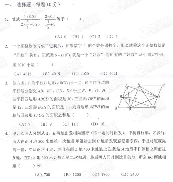 2011年华杯赛网络大赛寒假作业之练习试卷