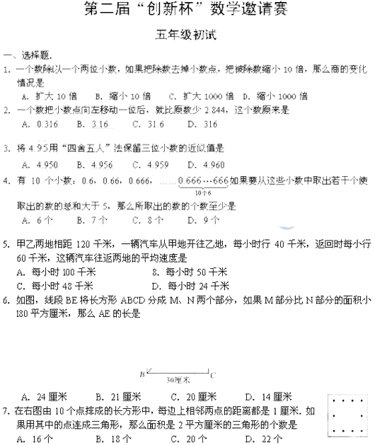 第二届创新杯五年级初赛试卷