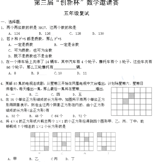 | 【第三届】创新杯小学组五年级决赛试卷 | 【第三届】创新杯小学组五年级初赛试卷 |