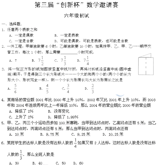 | 【第三届】创新杯小学组六年级决赛试卷 | 【第三届】创新杯小学组六年级初赛试卷 |