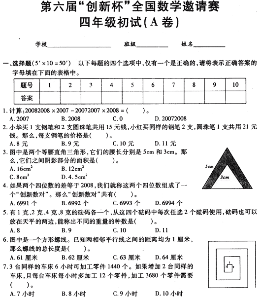 | 【第四届】创新杯小学组六年级决赛试卷 | 【第四届】创新杯小学组六年级初赛A卷 |