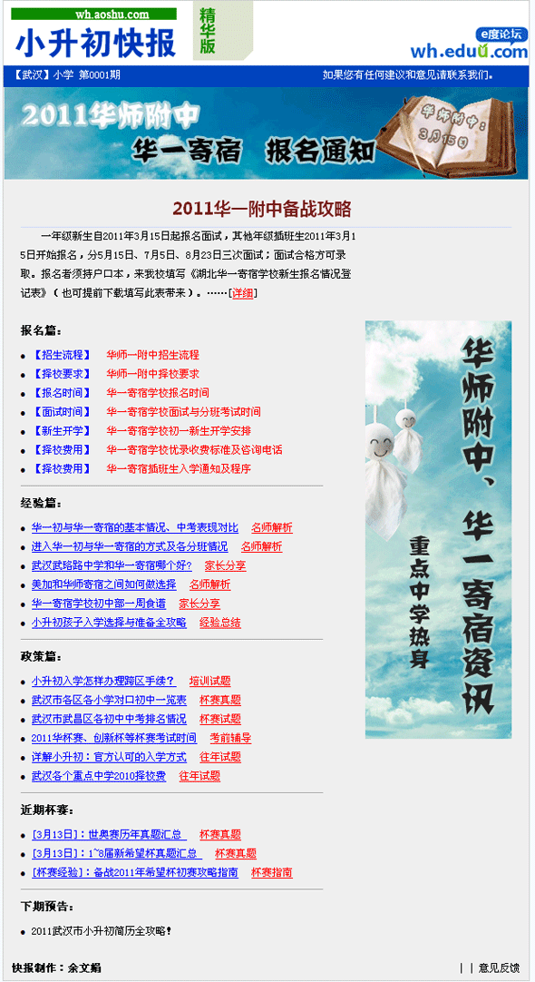 点击图片查看小升初快报01:2011华师一附中与华一寄宿招生信息