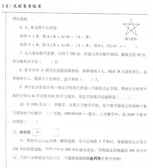 | 【第六届】创新杯小学组六年级初赛B卷 | 【第六届】创新杯小学组五年级决赛试卷 |