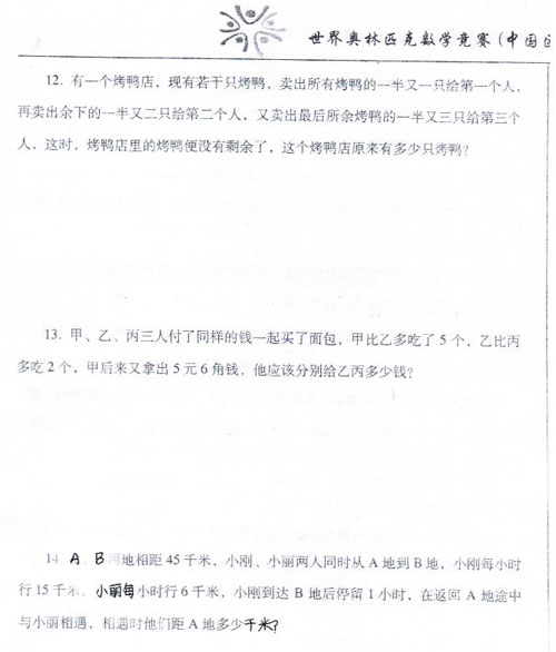 | 【第四届】创新杯小学组六年级初赛B卷 | 【第四届】创新杯小学组五年级决赛试卷 |