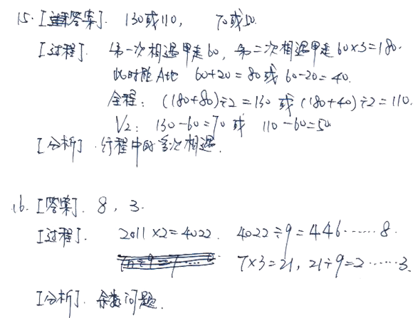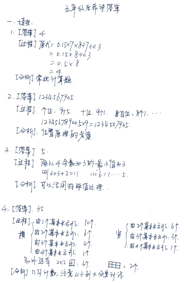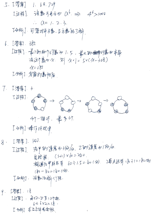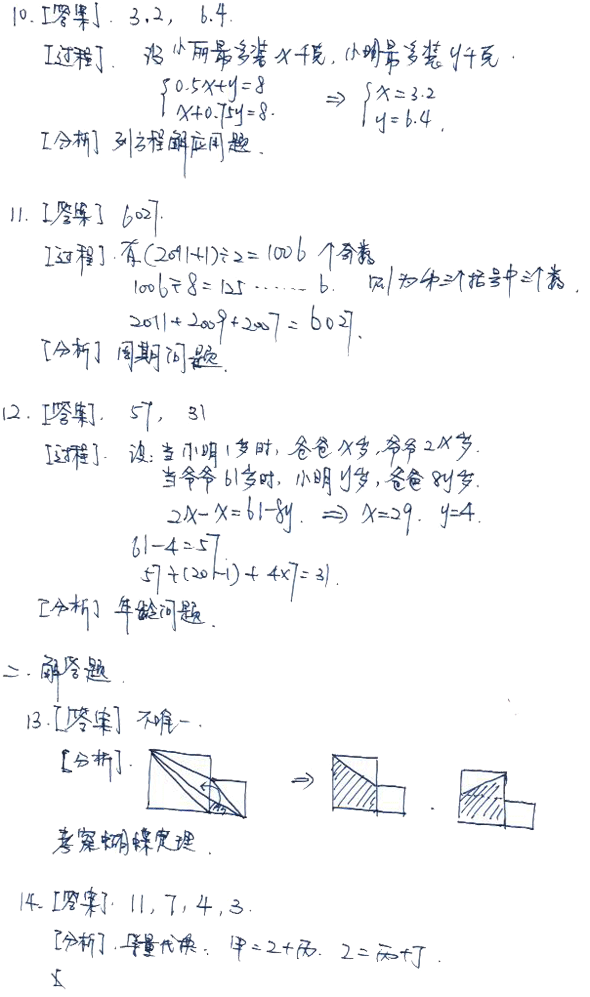 2011年第七届“希望杯”全国邀请赛五年级真题答案