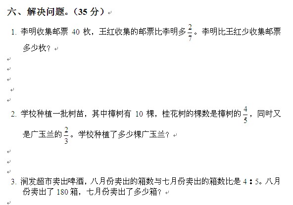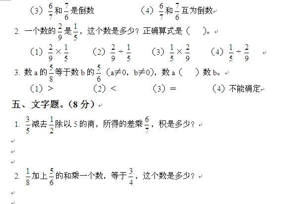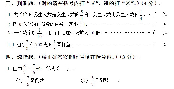 人教版六年级上册数学期中试卷 (7) 武汉奥数网整理 2011-10-24 17:45:56 人教版小学六年级语文、数学上册期中考试试题 六年级上学期语文期中考试题(8套) 六年级上学期数学期中考试题(6套) 人教版六年级上学期语文期中考试题(1) 人教版六年级上学期数学期中考试题(1) 人教版六年级语文上册期中考试题(2) 人教版六年级上学期数学期中考试题(2) 人教版六年级语文上册期中考试题(3) 人教版六年级上学期数学期中考试题(3) 人教版六年级语文上册期中考试题(4) 人教版六年级上学期数学期中考试题(4) 人教版六年级语文上册期中考试题(5) 人教版六年级上学期数学期中考试题(5) 人教版六年级语文上册期中考试题(6) 人教版六年级数学上册期中考试题(6) 人教版六年级语文上册期中考试题(7) 人教版六年级数学上册期中考试题(7) 人教版六年级语文上册期中考试题(8) 人教版六年级数学上册期中考试题(8) 人教版六年级上册数学期中试卷 (7) (答卷时间:90分钟)