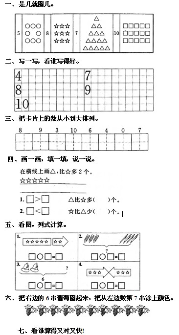 小学一年级数学上册第六单元试卷(人教版) 武汉奥数网整理 2011-12-06 10:09:22 小学一年级上册语文单元测试题(7套) 小学一年级上册数学单元测试题(7套) 一年级上册语文单元练习:看拼音写汉字 人教版小学一年级数学第一册第五单元训练题 新课标人教版一年级语文上册第五单元测试卷 一年级上册数学第七单元测试试卷 小学一年级上册语文数笔画专项练习试题 一年级上册数学第六单元加减法测试试卷 小学一年级上册语文单元练习:看图说话 人教版一年级上册数学第九单元试卷 新课标人教版一年级语文上学期第六单元测试题 一年级上册数学第八单元认识钟表测试卷 新课标人教版一年级上册语文第四单元复习测试卷 小学一年级数学上册第七单元试卷(人教版) 新人教版一年级上册语文第五单元复习测试卷 小学一年级数学上册第六单元试卷(人教版) 小学一年级数学上册第六单元试卷(人教版) [部分试卷预览,如需下载及打印word版试卷及答案,请至本文页尾点击下载。] [更多免费小学一年级试题请登录武汉奥数网查询。] 首页 上一页 下一页 尾页
