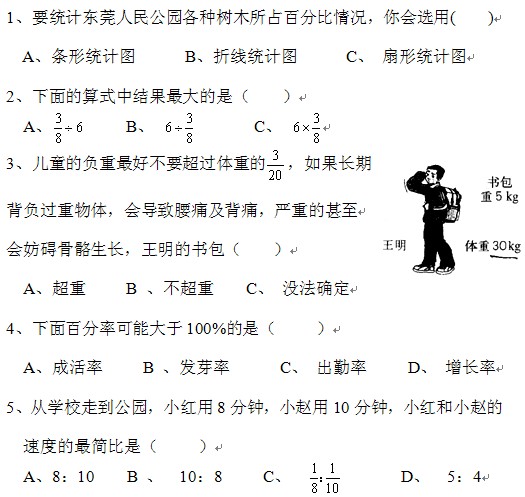 三、选择正确的答案,把答案的序号填在括号里 (5分)