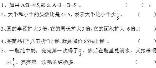 二、判断下面各题,对的在括号里画"√",错的画"×"(5分)