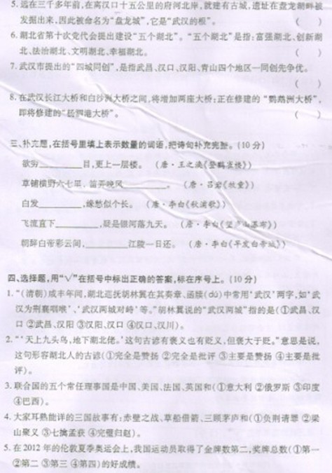 第八届读书知识竞赛区赛试卷及答案(四年级)(2)