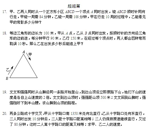 2013新希望杯高频考点解析(六年级):行程模块(4)