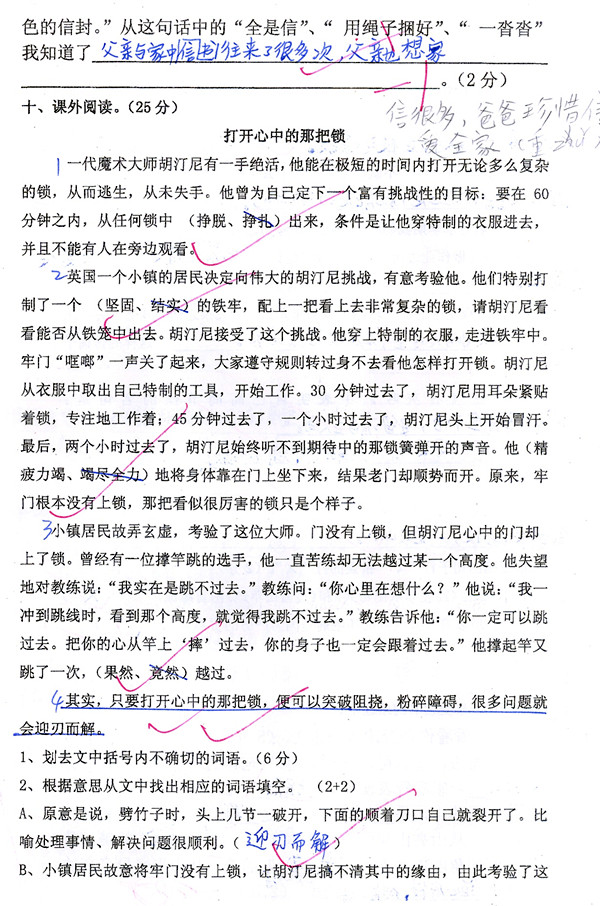 武汉育才二小五年级上册语文期中试卷及答案(3)