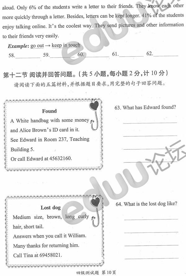 2012年习思英语能力测试4级试题及答案(含听力)(10)