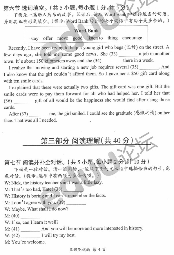 2012年习思英语能力测试5级试题及答案(含听力)(4)