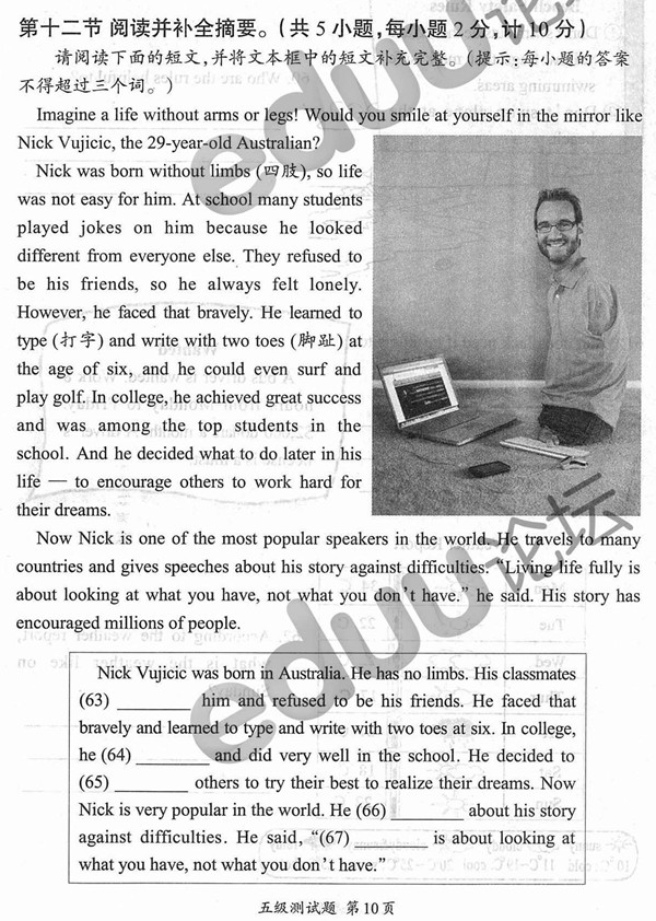2012年习思英语能力测试5级试题及答案(含听力)(9)
