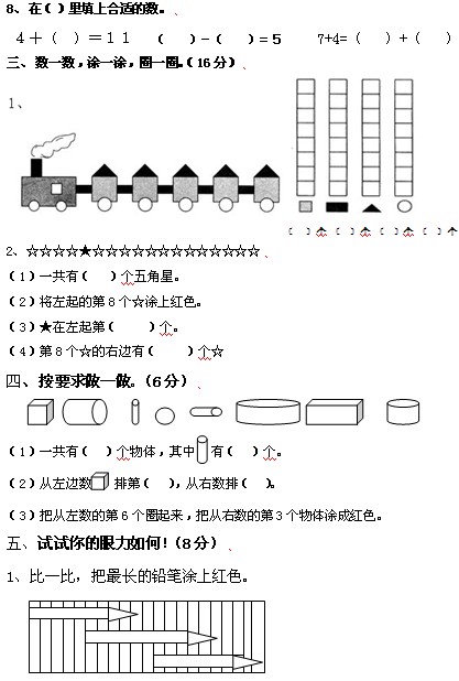 人教版一年级上册数学期末测试题及答案(6)(2)