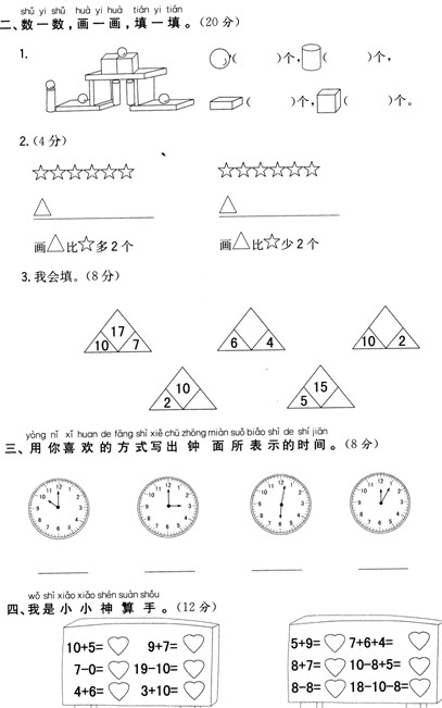 人教版一年级上册数学期末测试题及答案(7)(3)