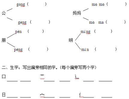 2、选择下列字的读音,在正确的音节后面画"√"。
