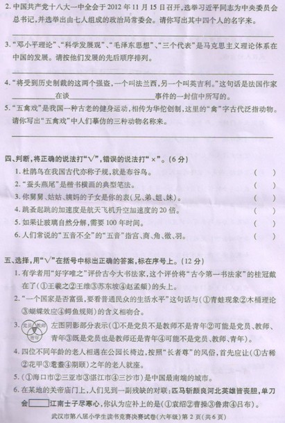 2012第八届读书知识竞赛六年级决赛试卷(2)