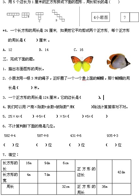 北师大版三年级上册数学期末试卷四(2)
